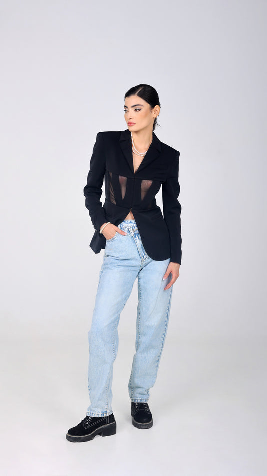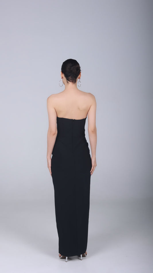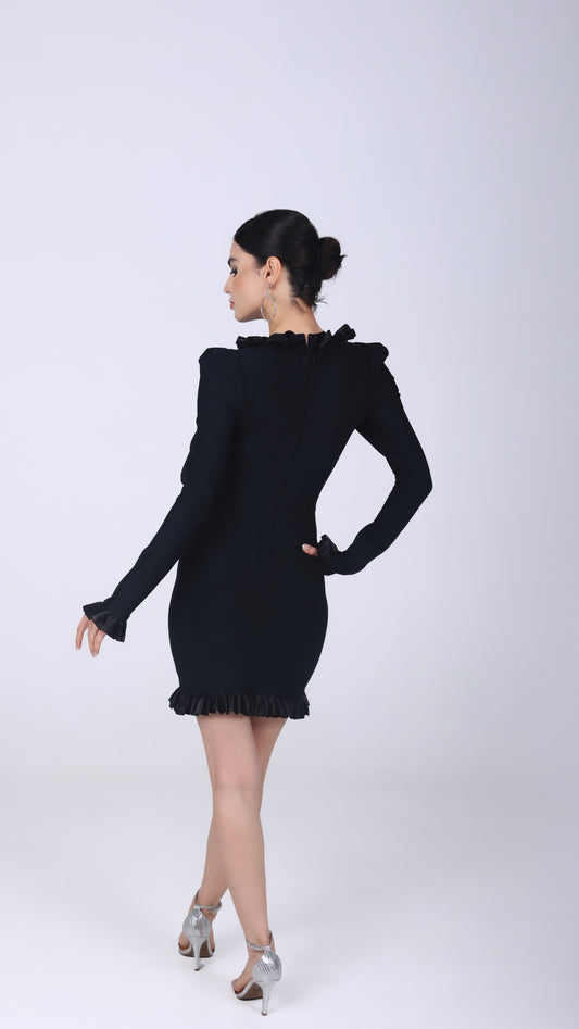 ALINA BLACK RUFFLE LONG SLEEVE MINI BANDAGE DRESS