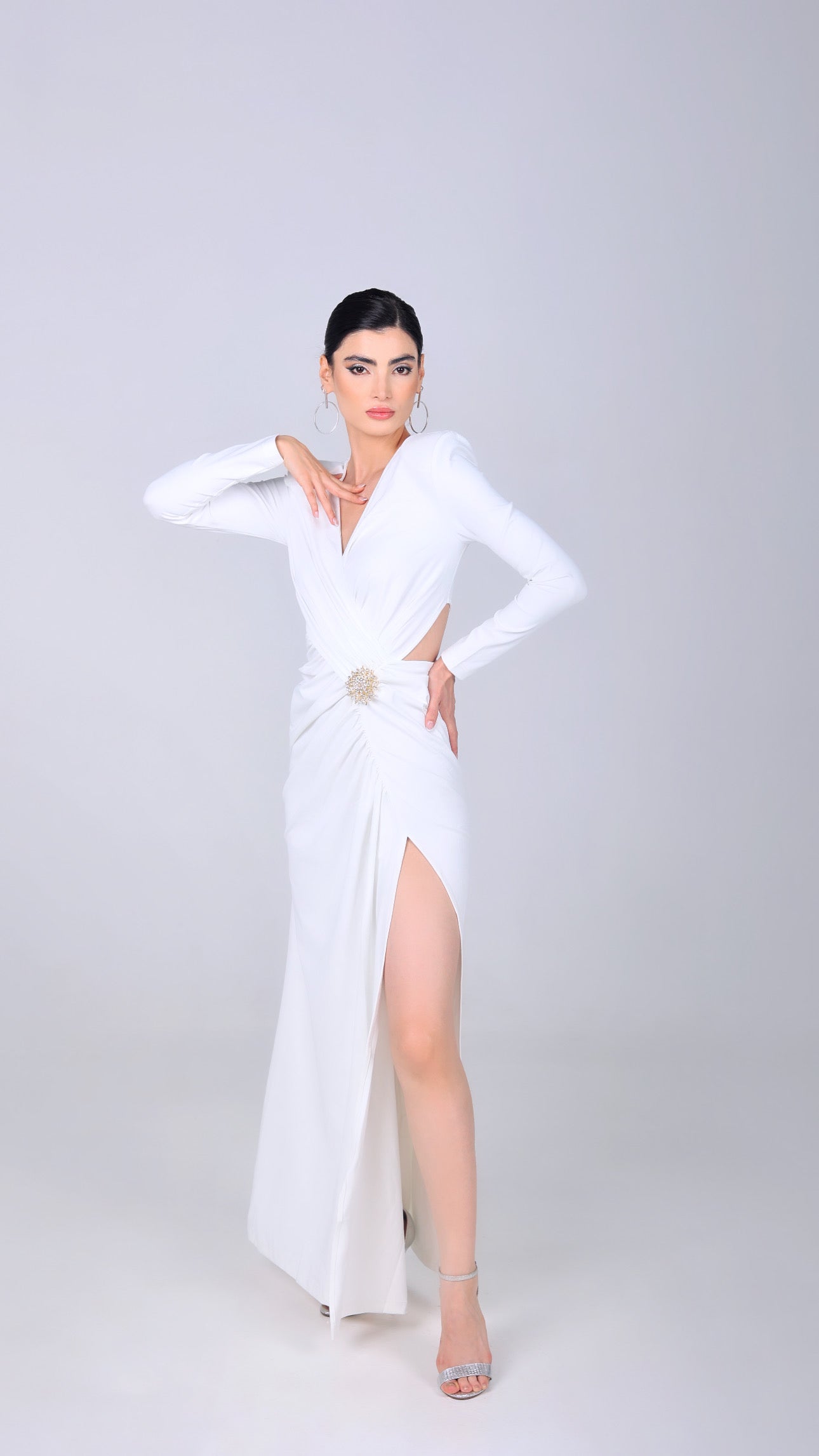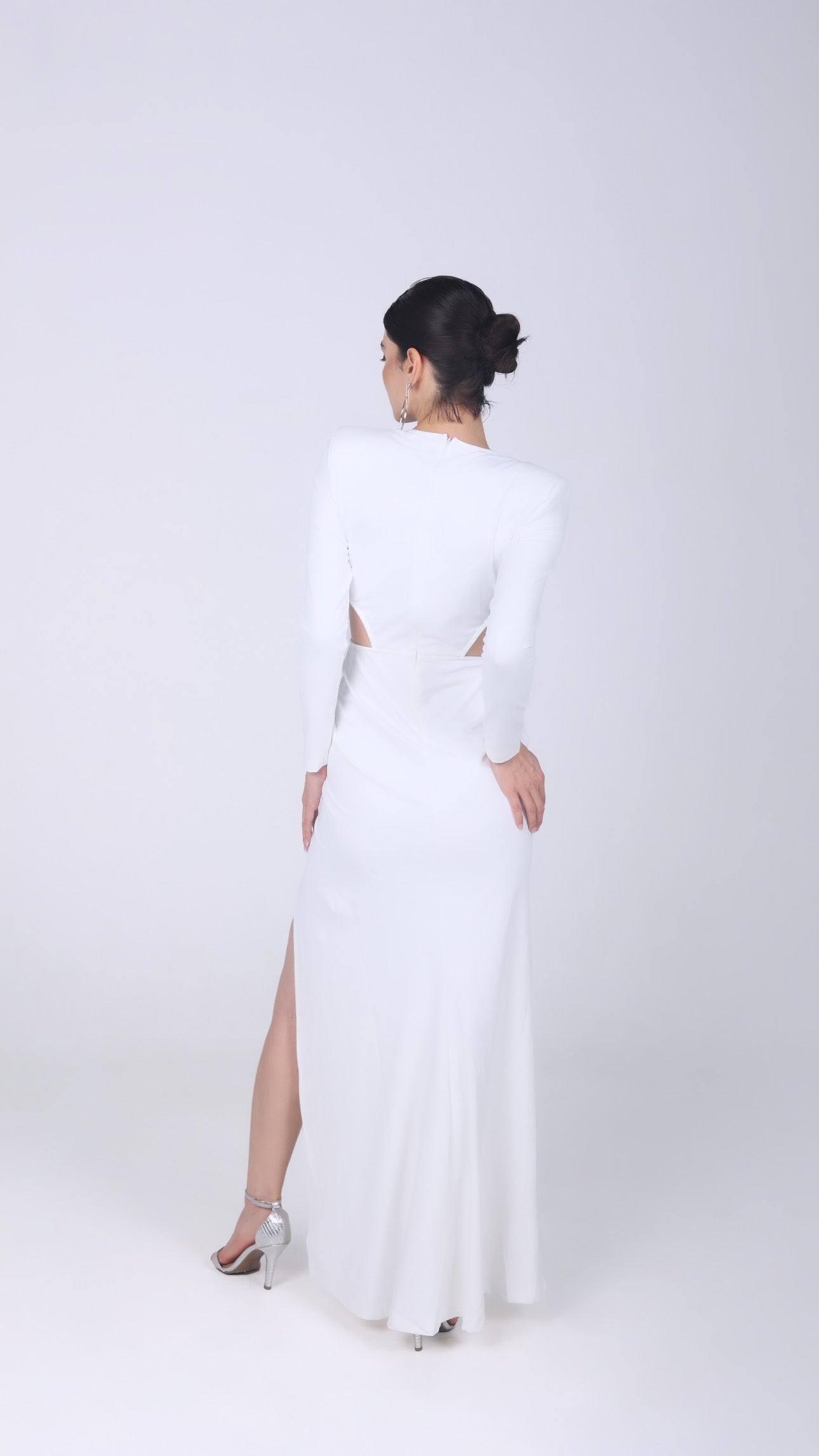PATRINA: Cutout Maxi Dress is perfect for any summer event! Its beautiful white color and unique brooch detail on the shoulder will make you stand out from the crowd. The maxi dress is also extremely comfortable and made from high quality materials